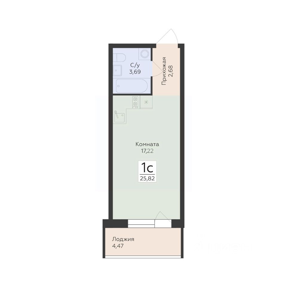 Общая площадь25,82 м2