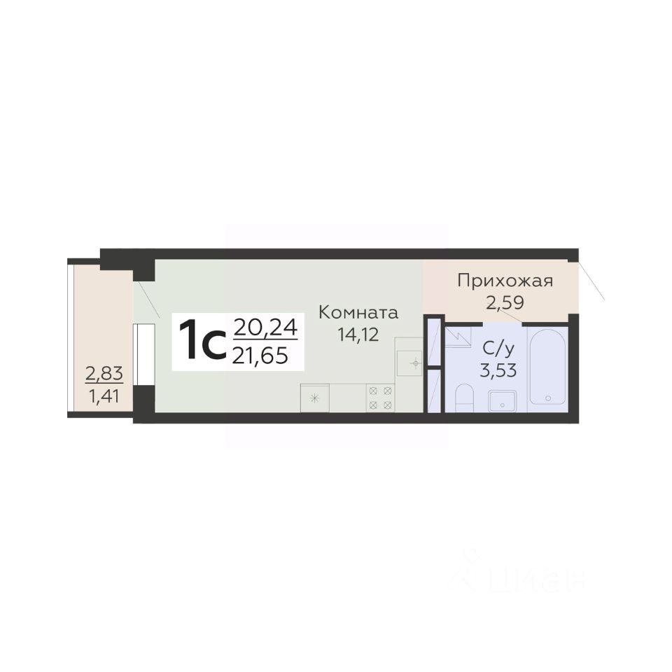 Общая площадь21,65 м2