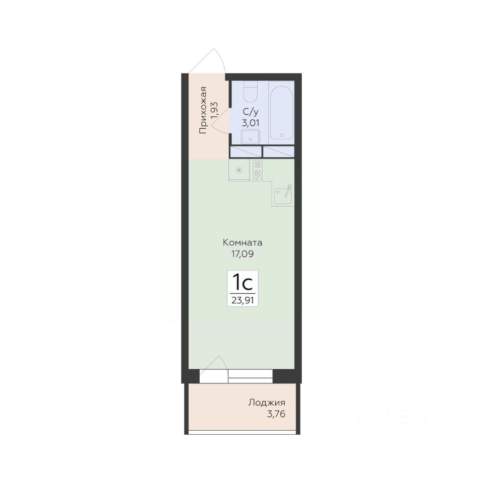 Общая площадь23,91 м2