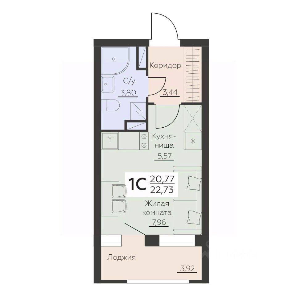 Общая площадь22,73 м2