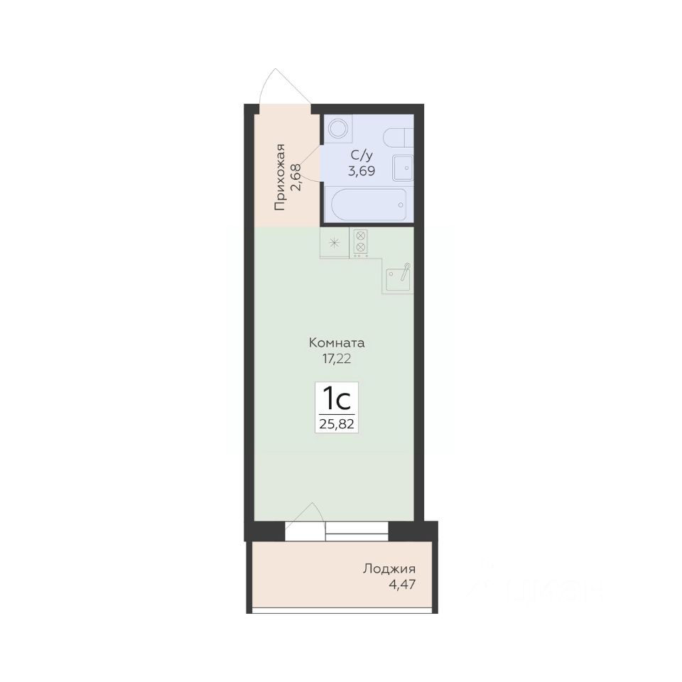 Общая площадь25,82 м2