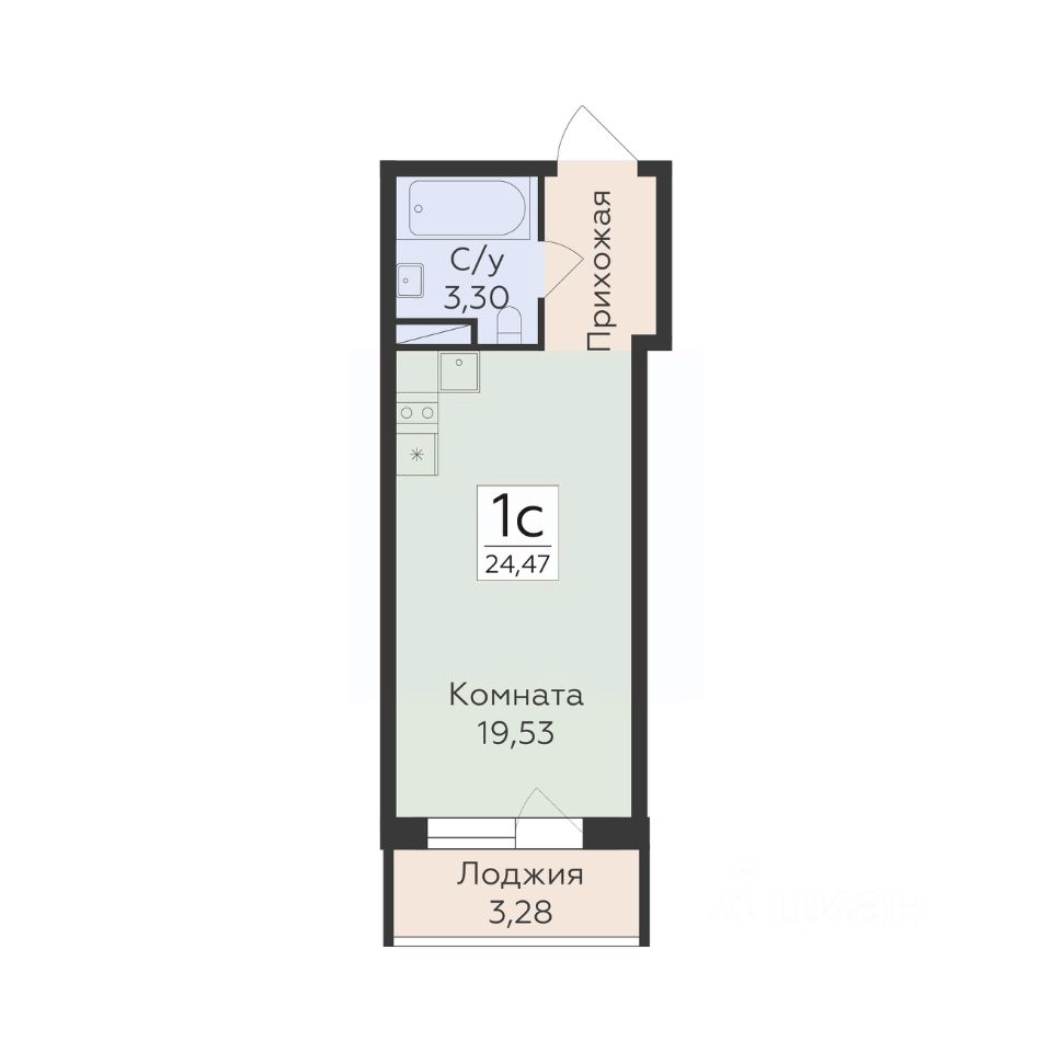 Общая площадь24,47 м2