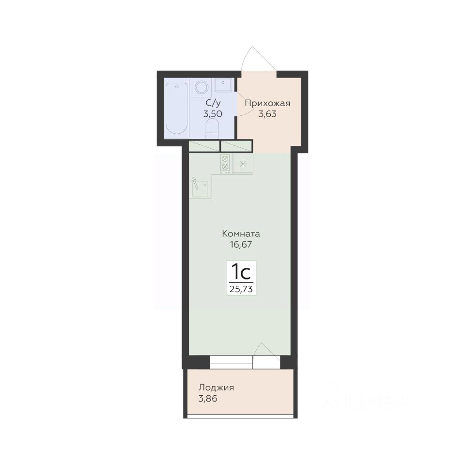Общая площадь25,73 м2