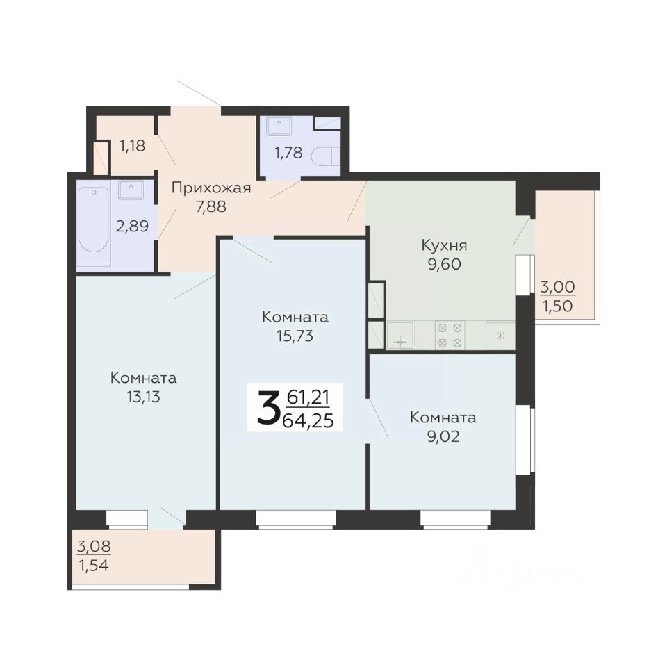 продам 3-к, Острогожская, 156/37 465 850 ₽