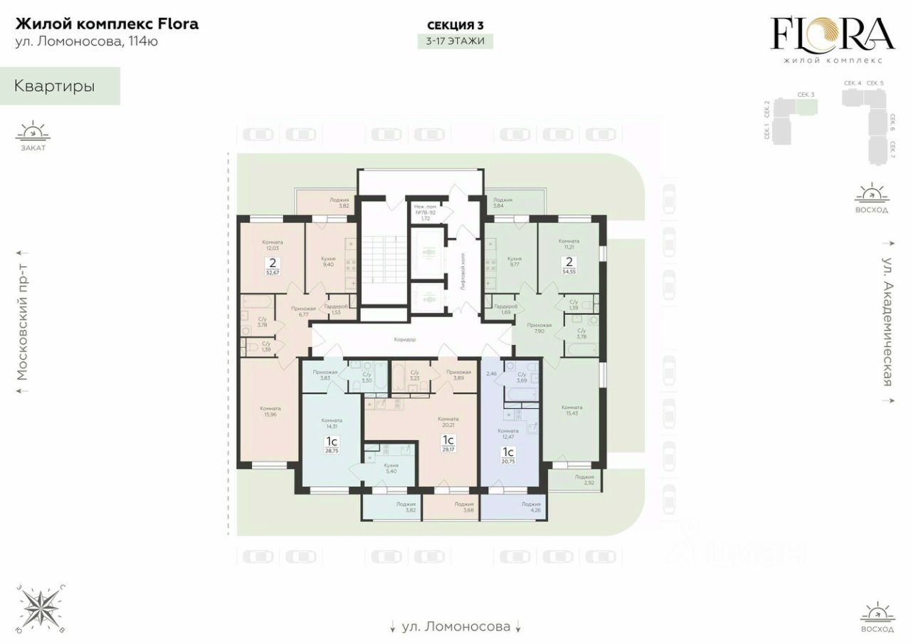 Скидки до 11%, семейная ипотека, рассрочка 0% до 12 месяцев. Жилой комплекс ''FLORA'' - проект комфорт-класса, расположенный в одном из самых привлекательных и зелёных районов Воронежа на улице Ломоносова.
