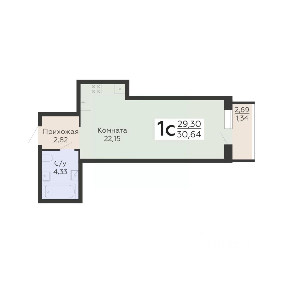 Общая площадь30,64 м2