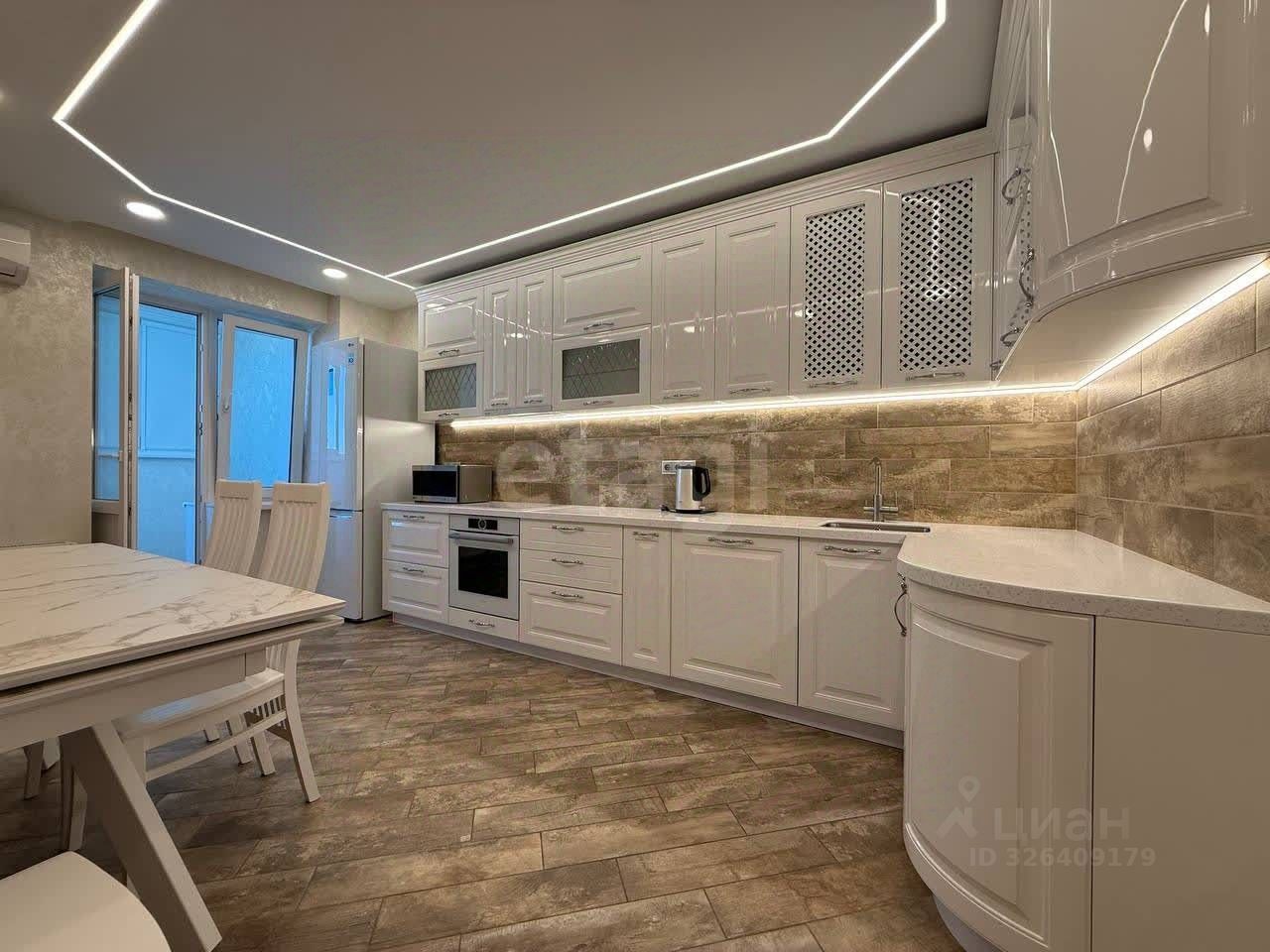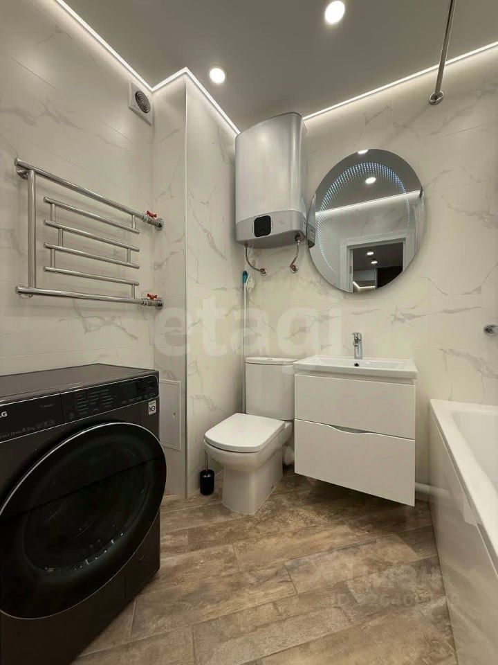 Авторский ремонт: Светлая палитра, дизайнерская подсветка и качественная плитка на полу создают ощущение простора и уюта. Во всей квартире, включая балкон и ванную, реализована система ''теплого пола'' (водяной подогрев от общих коммуникаций), обеспечивающая комфорт в любую погоду. Техническое превосходство: Установлены два кондиционера (в жилой зоне и на кухне) для идеального микроклимата, бойлер для бесперебойной подачи горячей воды, высокоскоростной Wi-Fi. Полное оснащение! Всё для жизни уже на месте: Кухня: гарнитур с каменной столешницей, духовой шкаф, посудомоечная машина, холодильник, СВЧ, чайник, вся необходимая посуда. Б