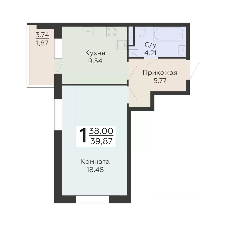 Общая площадь39,87 м2