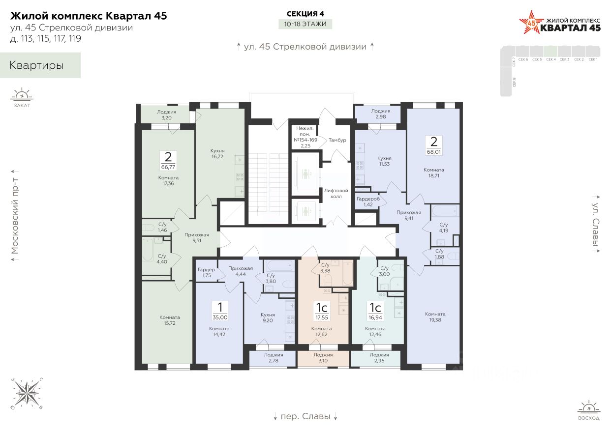 КВАРТАЛ 45 это амбициозный проект будущего сердца Московского проспекта. ЖК комфорт-класса, который строится по монолитно-кирпичной технологии.