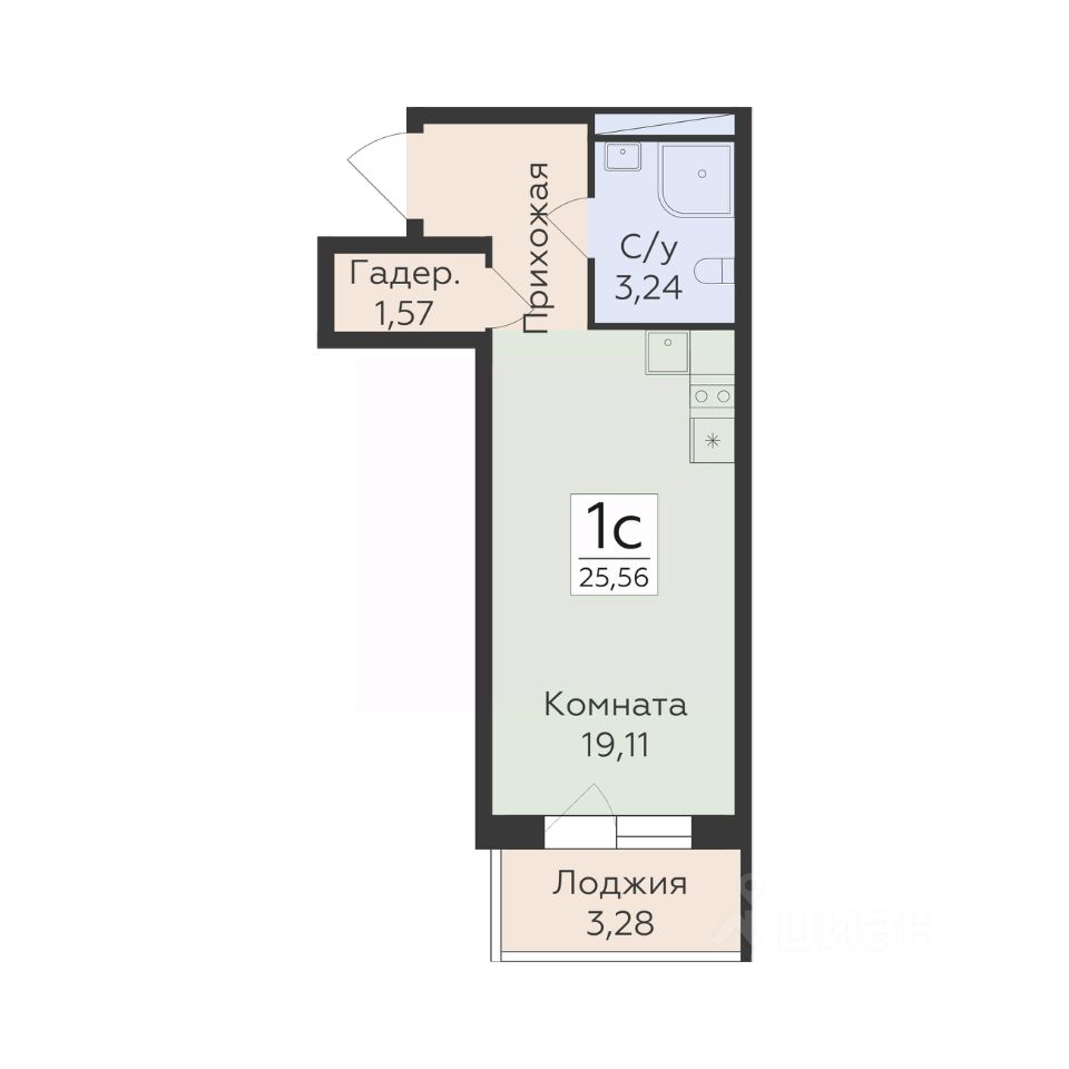 Общая площадь25,56 м2