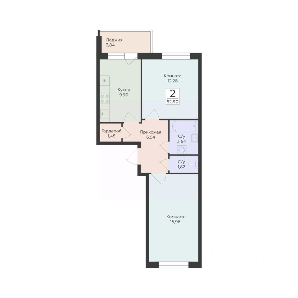 Общая площадь52,6 м2