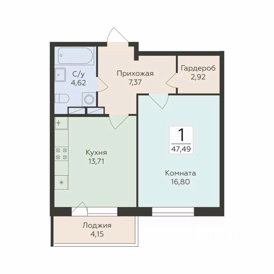 продам 1-к, Чапаева, 68б6 905 046 ₽
