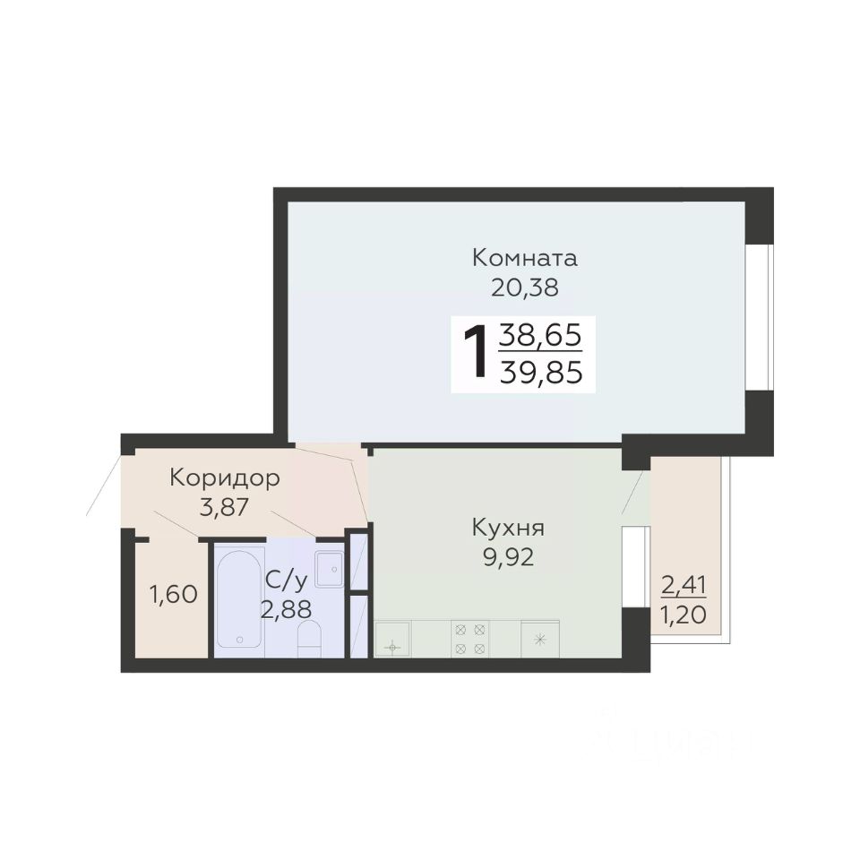 Общая площадь39,85 м2