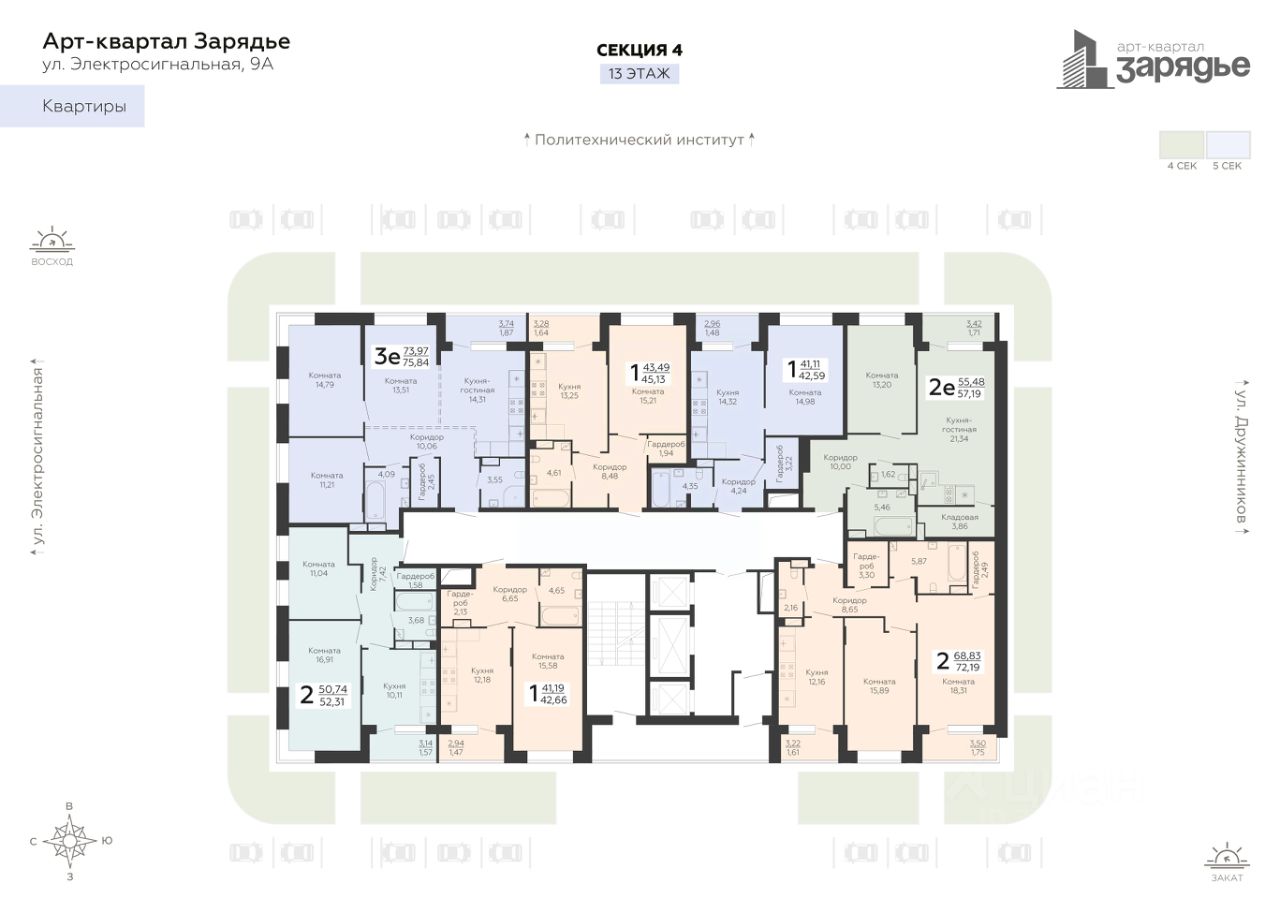 Арт-квартал ''Зарядье'' - это новый микрорайон, который расположен на пересечении улиц Электросигнальной и Дружинников, в 5 минутах ходьбы от остановки Политехнический институт. Арт-квартал возводится в тихой части Коминтерновского района рядом с крупнейшей городской артерией - Московский проспект. Благодаря своему удачному расположению путь до центра города займет всего 10 минут. Помимо транспортной доступности в районе активно развита инфраструктура.