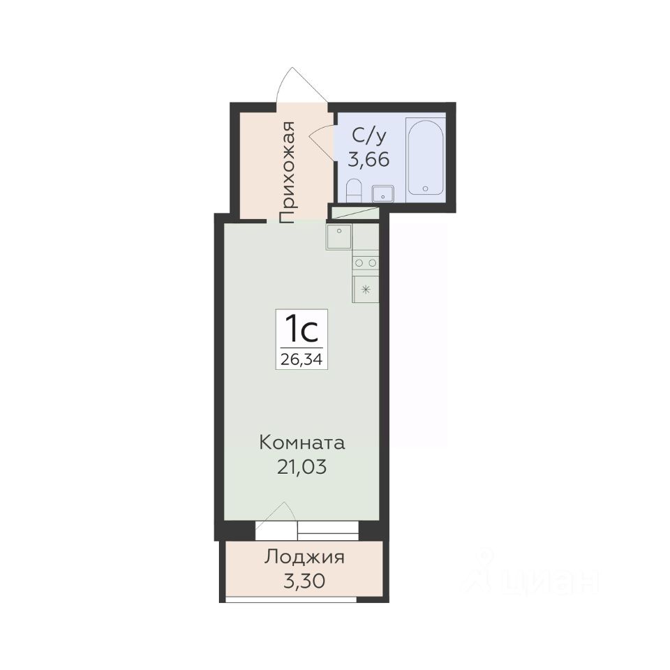 Общая площадь26,34 м2