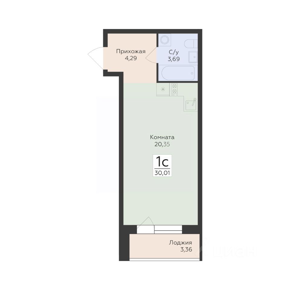 Общая площадь30,01 м2