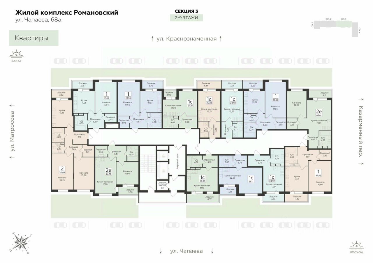 Жилой комплекс ''Романовский'' - проект класса ''комфорт плюс'', расположенный на улице Чапаева, в месте, где история встречается с современностью. Соседство с объектом культурного наследия ''Водонапорная башня Романовской слободы'' делает жилой комплекс воплощением статусности, комфорта и умиротворения. Выбирайте спокойную размеренную жизнь в шумном мегаполисе, не отказываясь от привычных занятий и увлечений. Прогулочный бульвар, стадион для спорта на свежем воздухе, супермаркеты, креативный кластер здесь есть всё, что нужно для полноценной наполненной жизни.