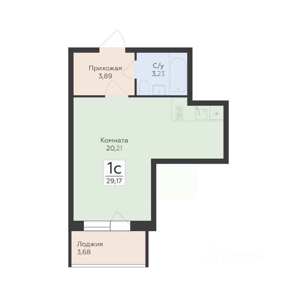 Общая площадь29,17 м2