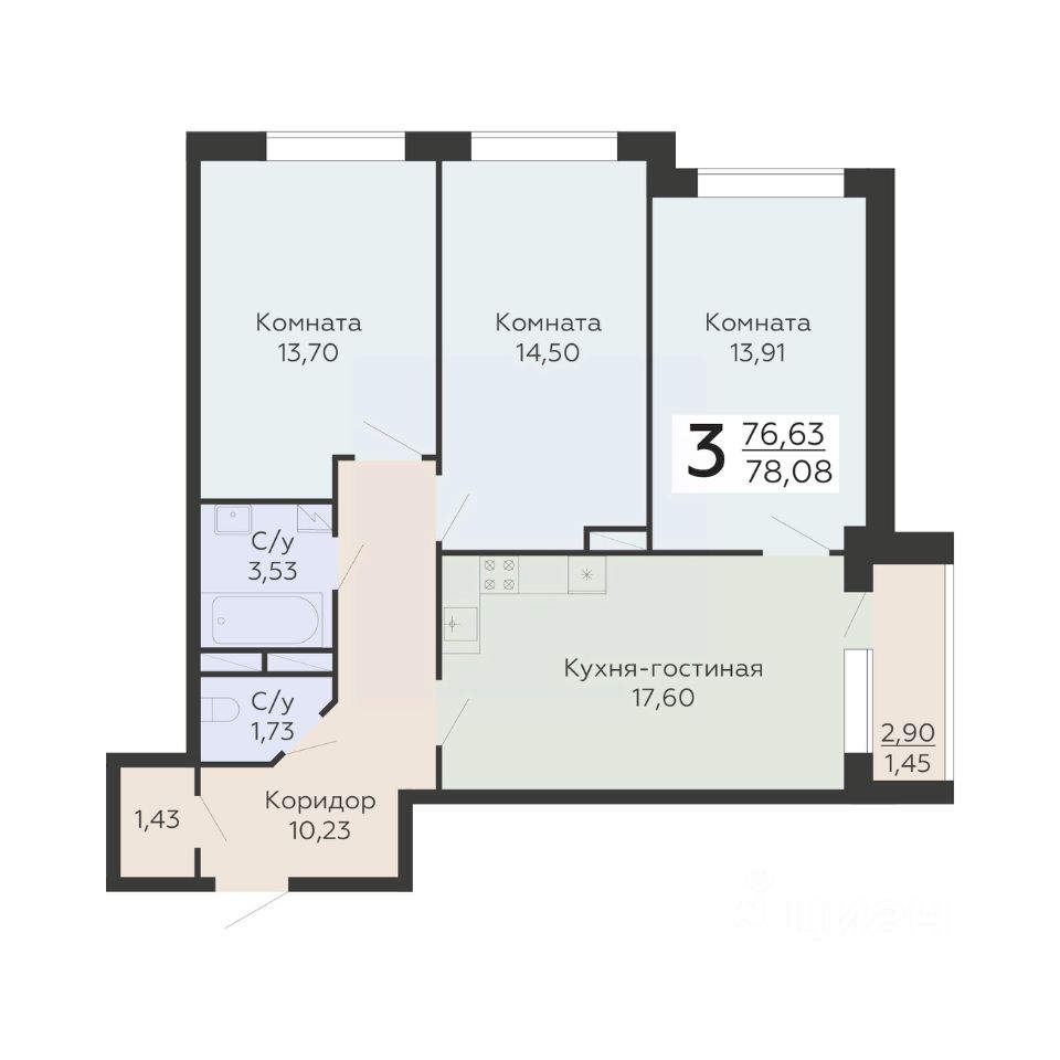 Общая площадь78,08 м2