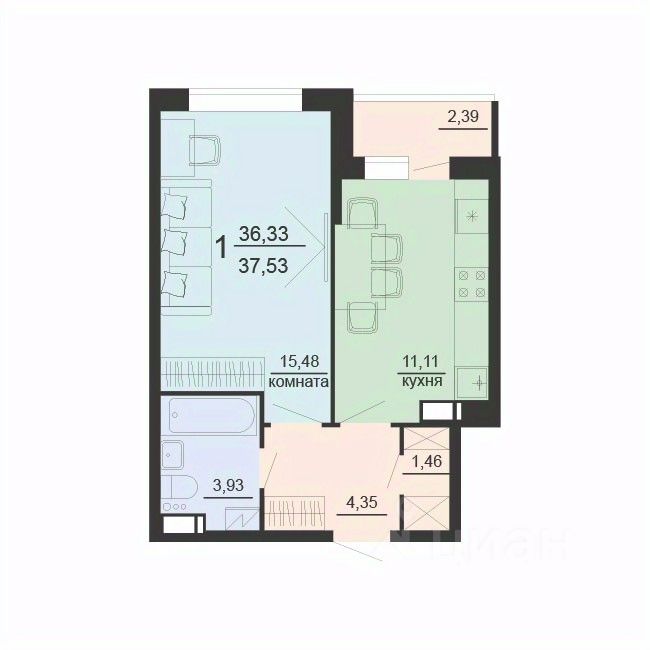 В квартире выполняется качественная предчистовая отделка, возможно приобрести и чистовую отделку. Благоустройство прилегающей территории включает в себя организацию зон отдыха, детский городок и спортивные площадки, автостоянка, а также вишневый сад и комплексное озеленение. В непосредственной близости расположены образовательные учреждение и магазины.