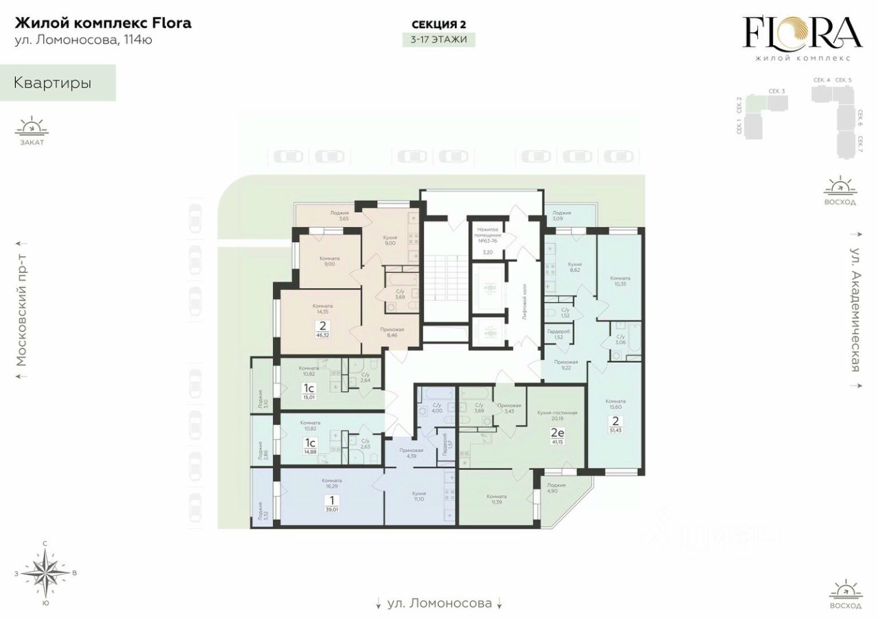 Скидки до 11%, семейная ипотека, рассрочка 0% до 12 месяцев. Жилой комплекс ''FLORA'' - проект комфорт-класса, расположенный в одном из самых привлекательных и зелёных районов Воронежа на улице Ломоносова.