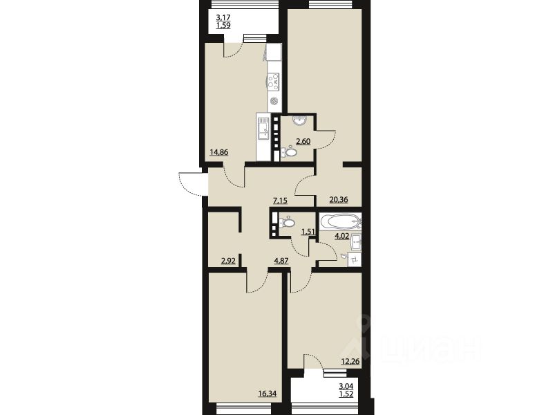 продам 3-к, Московский проспект, 13814 832 000 ₽