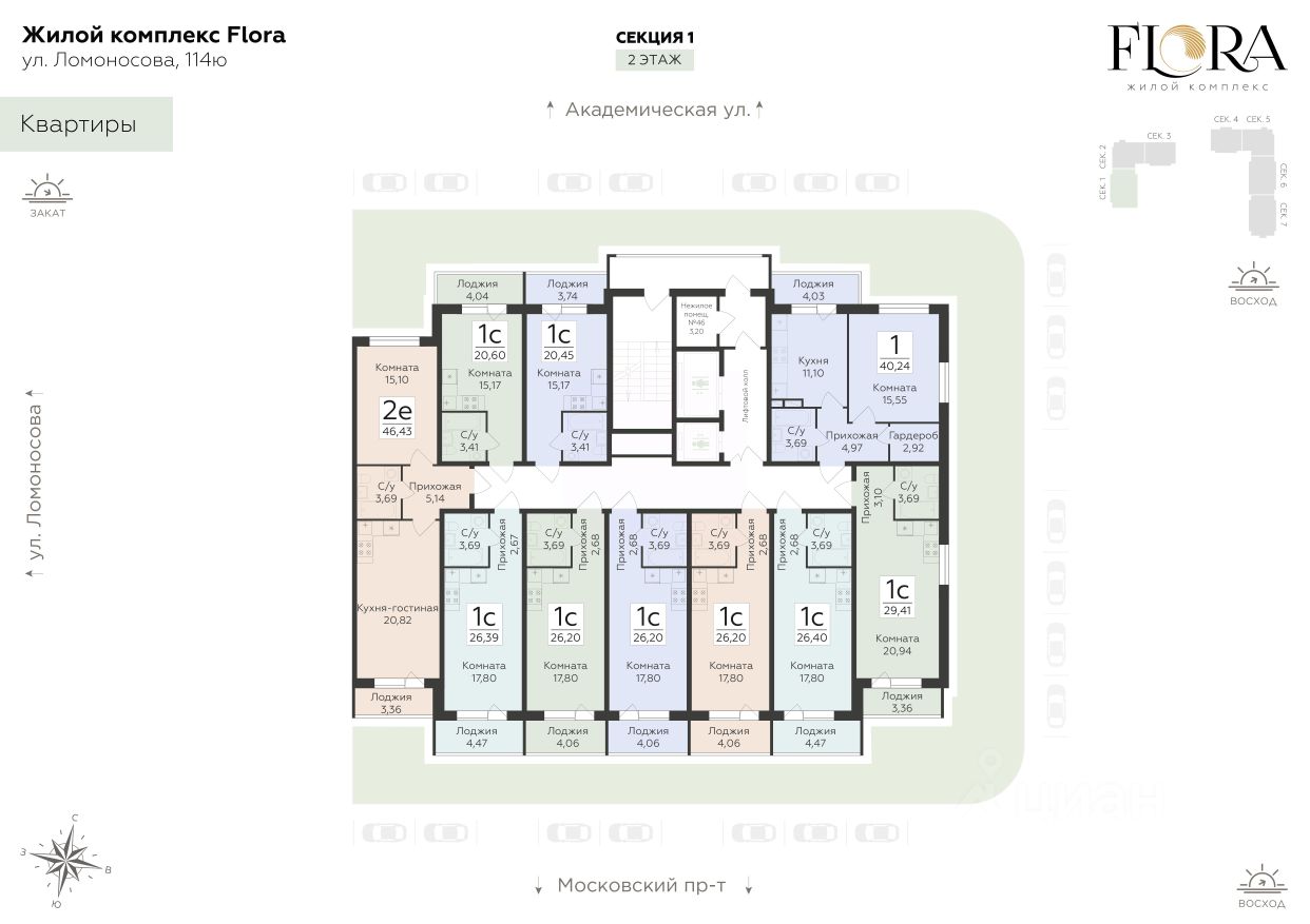 Скидки до 11%, семейная ипотека, рассрочка 0% до 12 месяцев. Жилой комплекс ''FLORA'' - проект комфорт-класса, расположенный в одном из самых привлекательных и зелёных районов Воронежа на улице Ломоносова.