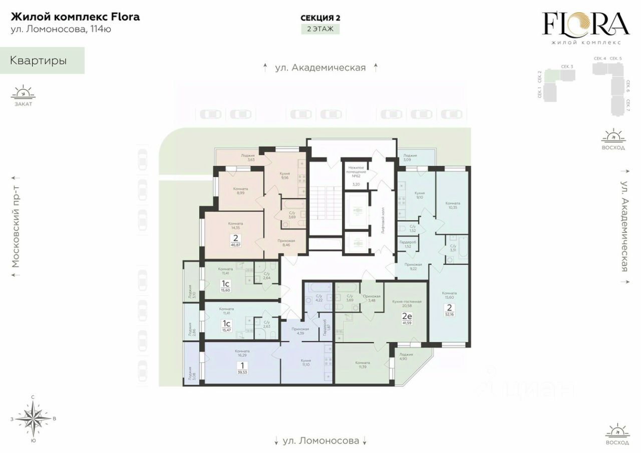 Скидки до 11%, семейная ипотека, рассрочка 0% до 12 месяцев. Жилой комплекс ''FLORA'' - проект комфорт-класса, расположенный в одном из самых привлекательных и зелёных районов Воронежа на улице Ломоносова.