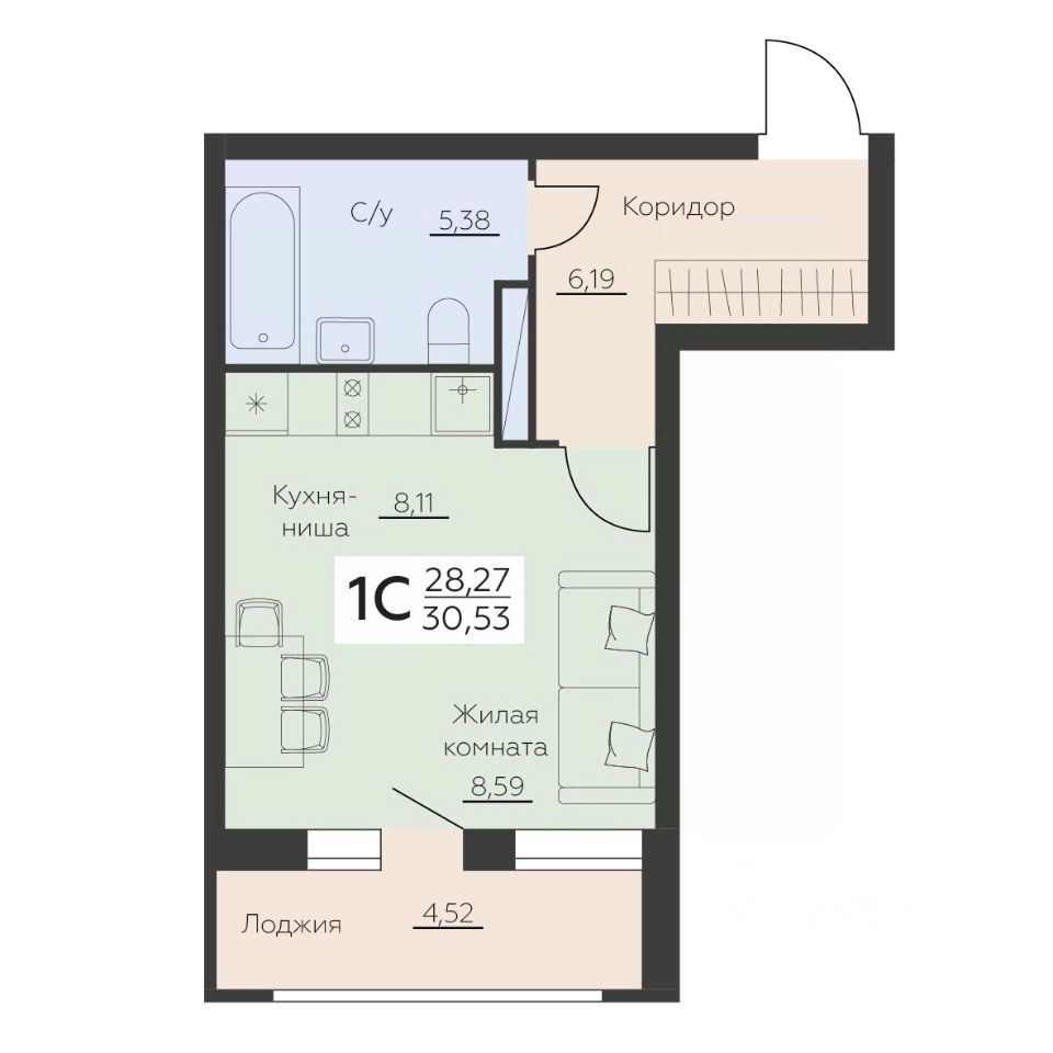 Общая площадь30,53 м2