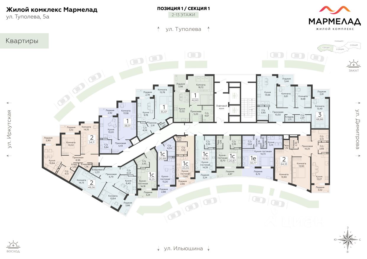 продам 1-к, Туполева, 5н4 856 400 ₽