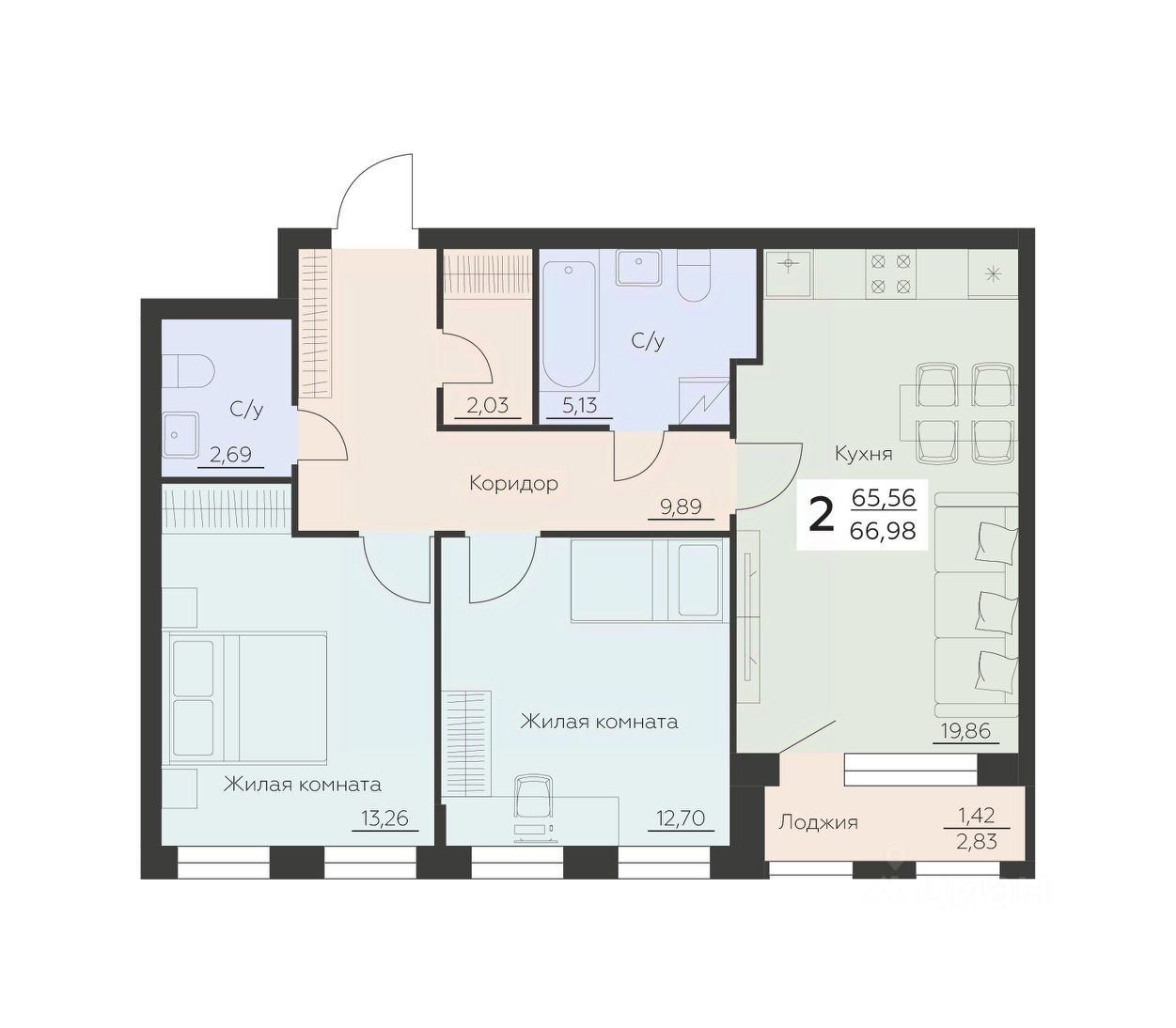 Общая площадь66,98 м2