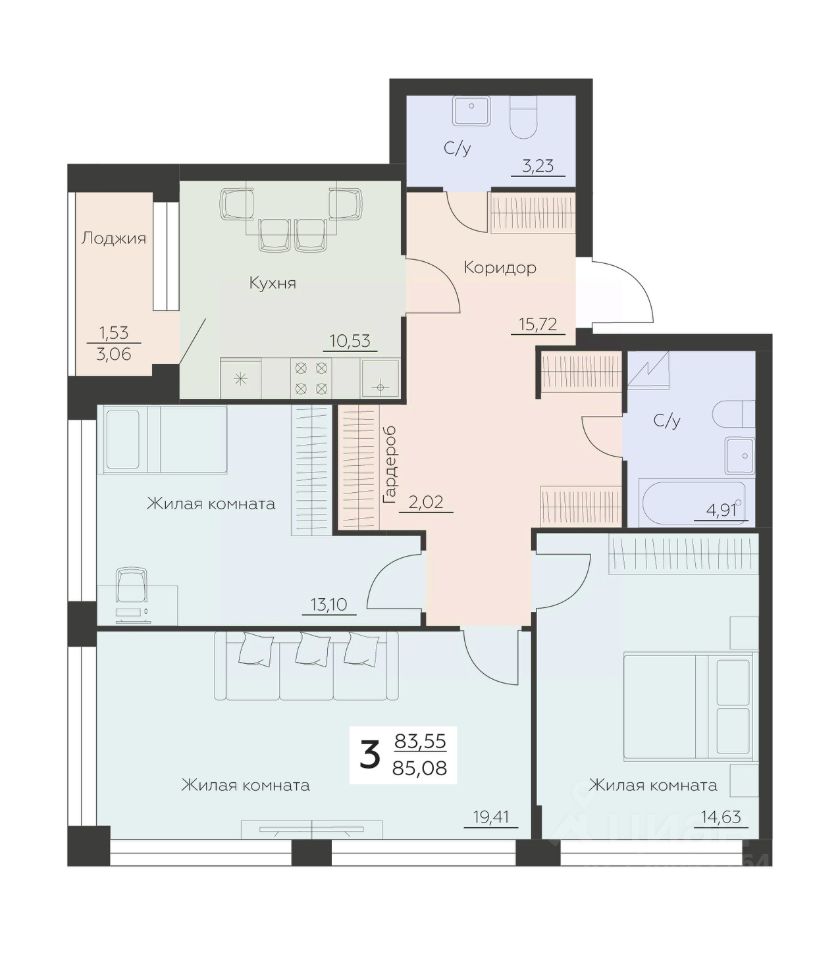 Общая площадь85,08 м2