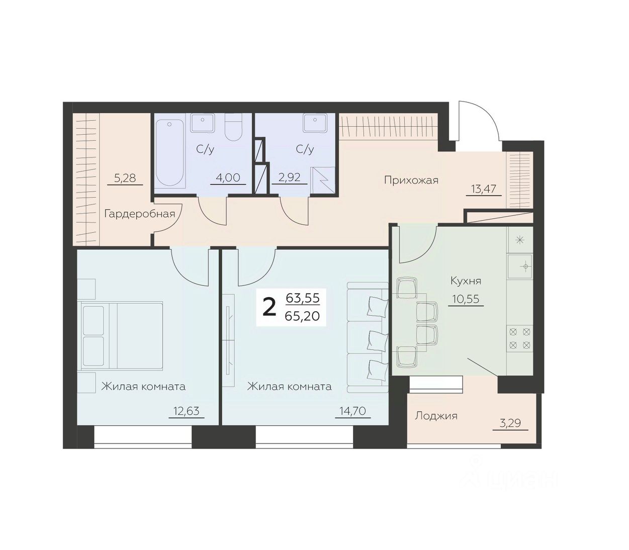 Общая площадь65,2 м2
