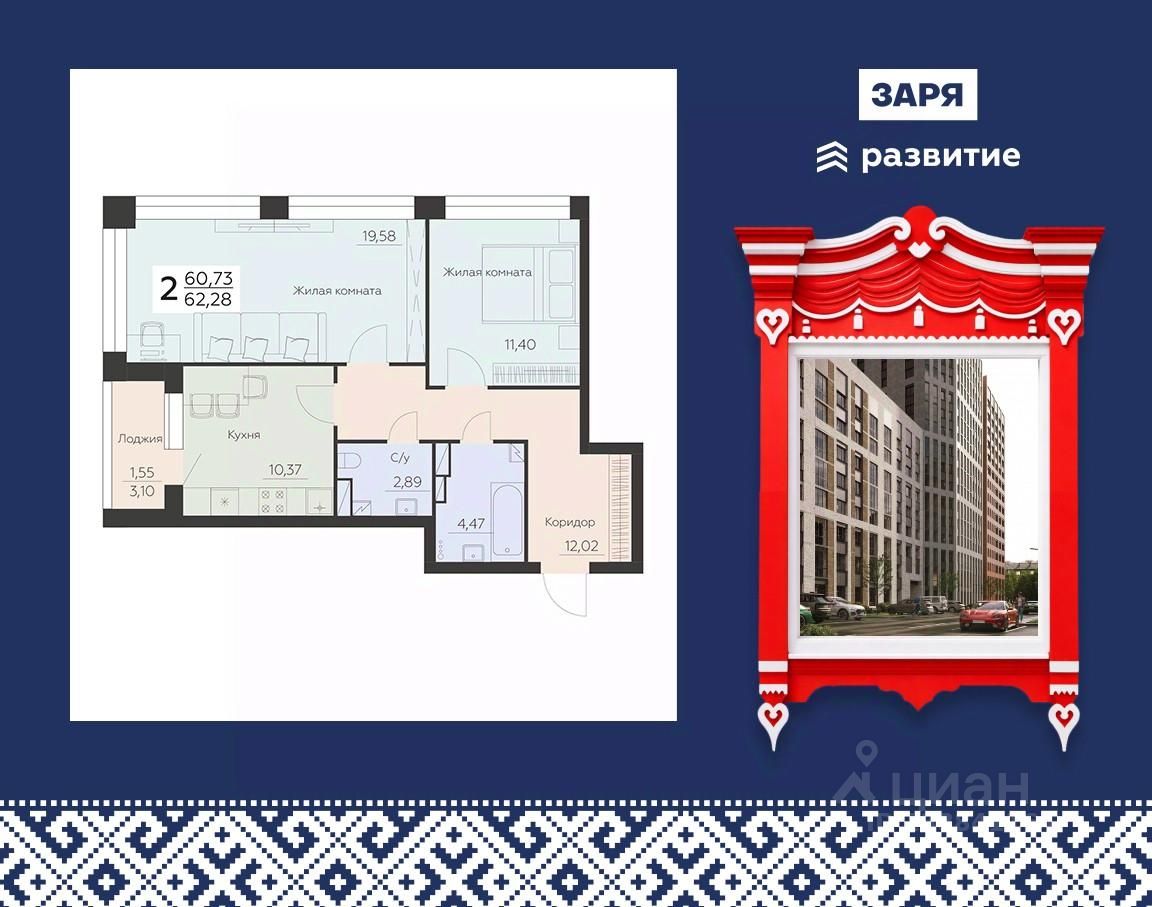 Дом-комьюнити ''Заря'' находится в одном из самых перспективных и развивающихся районов города. Рядом СК ''Чернавская дамба'', ТЦ ''Европа'', Парк Алые паруса. В шаговой доступности остановки, школы, детские сады и магазины.