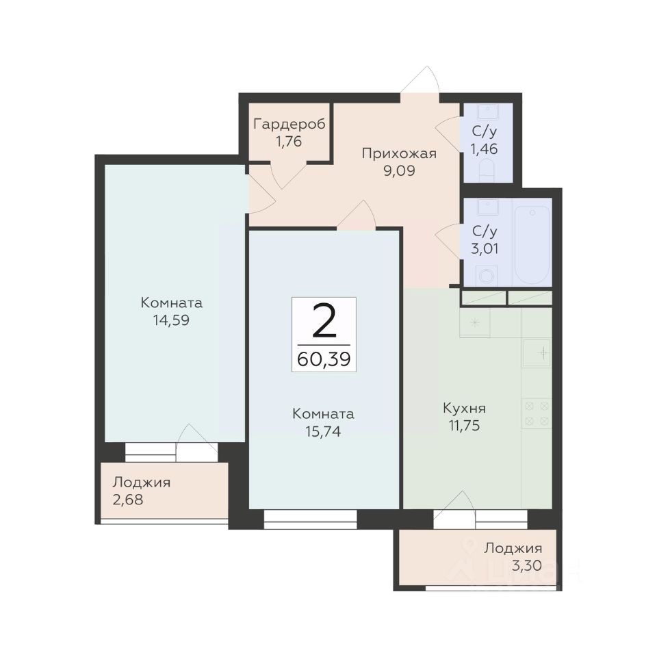 Общая площадь60,39 м2