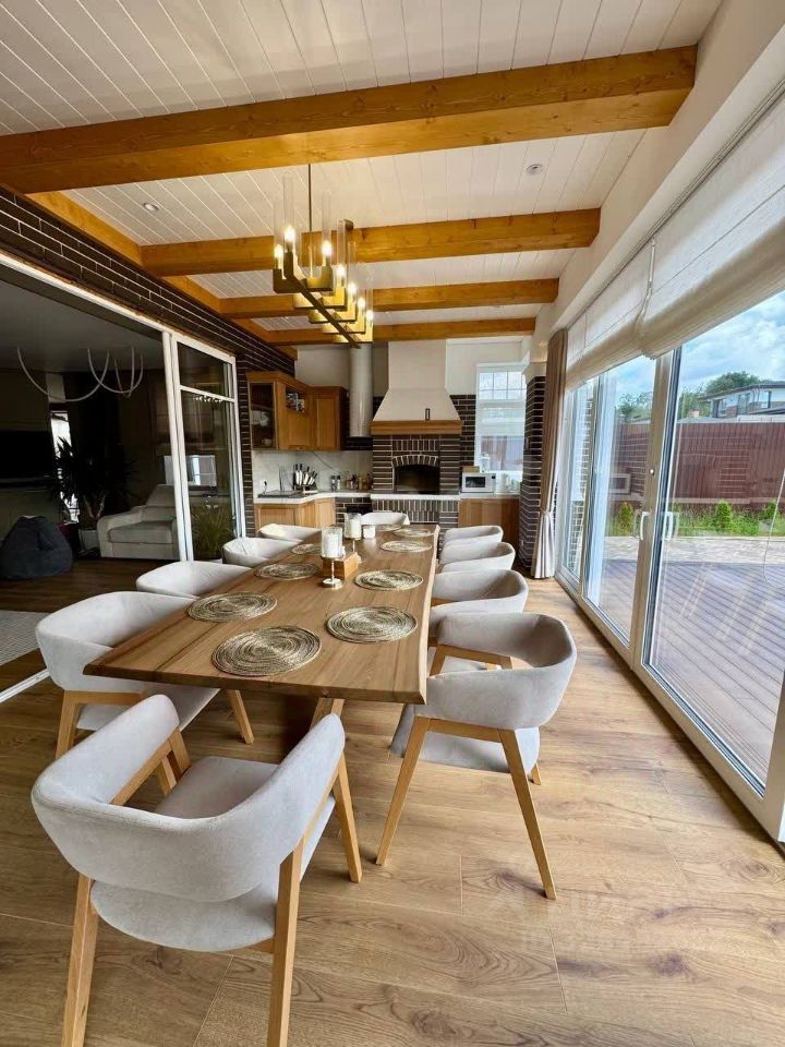 Двухэтажный элитный кoттeдж с дизайнерским pемoнтом в окружeнии пpиpоды! Площадь 400 кв. м с цокольным этажом 250 кв. м расположен в закрытом поселке ''Первозванный''. Отличная транспортная доступность позволяет добраться до Северного района города за 7 минут на автомобиле. Дом построен из газосиликатных блоков с облицовкой кирпичом, на блочном фундаменте, с кровлей из гибкой черепицы. Внутреннее пространство оформлено по готовому дизайн-проекту, который остается новому владельцу. На жилых этажах выполнены предчистовые работы: стены подготовлены под покраску, установлены межкомнатные двери, смонтированы кондиционеры, закуплена плитка. Планировка включает четыре просторные спальни, большую кухню-гостиную, несколько санузлов, постирочную и котельную. Цокольный этаж полностью готов к использованию и оборудован зоной отдыха с камином, сауной, хаммамом, столовой зоной с мангалом, а также большим бассейном с противотоком, системой очистки и подогрева. На участке расположен гараж на два автомобиля, отдельное техническое помещение с навесом и санузлом, обустроена детская площадка. Выполнены все ландшафтные работы: уложен газон, высажены декоративные и плодовые деревья. К дому подключены все центральные коммуникации — газ, электричество, водопровод, а также автономная канализация и современное газовое отопление, проведен высокоскоростной интернет. Ключевым преимуществом объекта является его расположение в непосредственной близости к лесу, что обеспечивает чистый воздух и приватность. Это готовое решение для комфортного проживания с полным набором инфраструктуры для семьи.