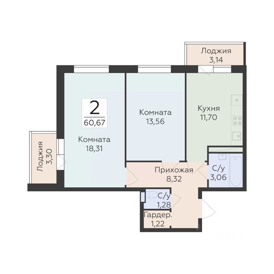 Общая площадь60,67 м2