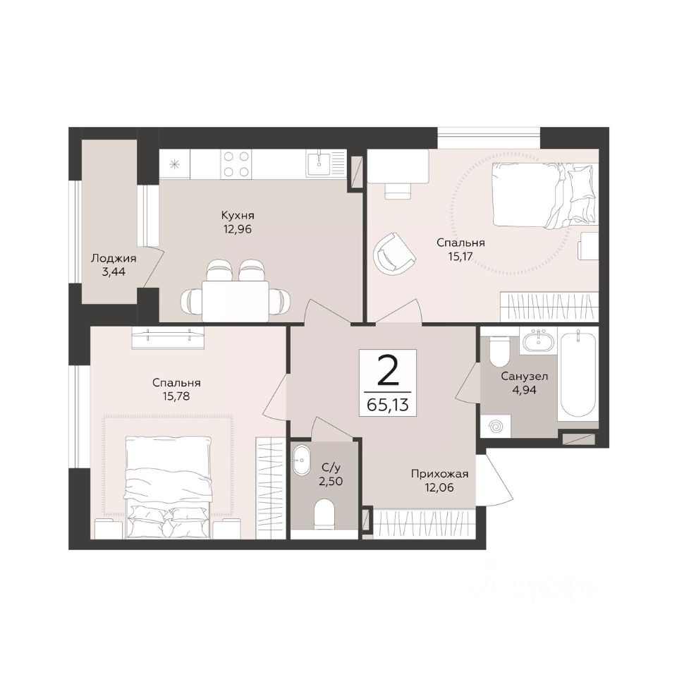 Общая площадь65,13 м2