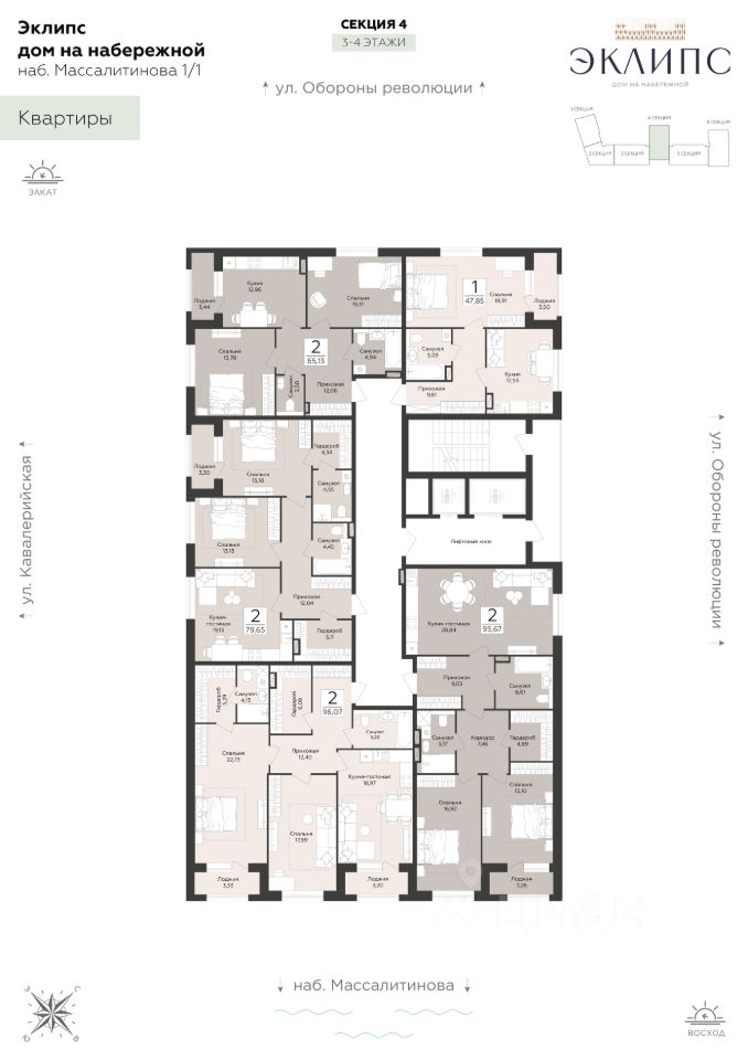 Продаётся 2-комнатная квартира в строящемся доме (Эклипс), срок сдачи: III-кв. 2030, общей площадью 65.13 кв.м., на 4 этаже. Новый жилой комплекс от группы компаний ''Развитие'' расположен по адресу: г. Воронеж, набережная Массалитинова.