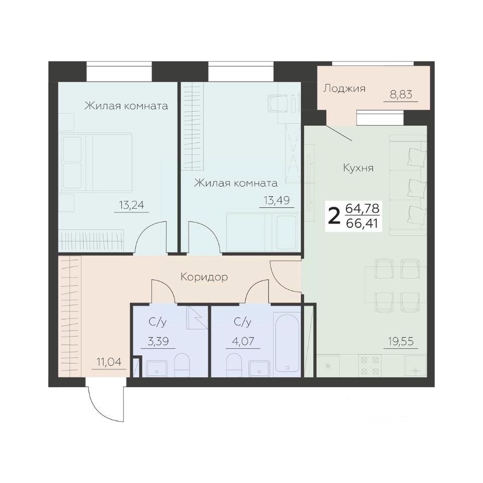 Общая площадь66,41 м2
