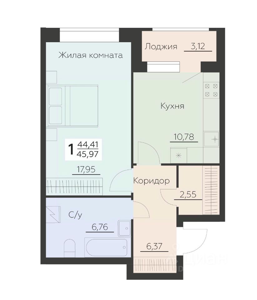 Общая площадь45,97 м2