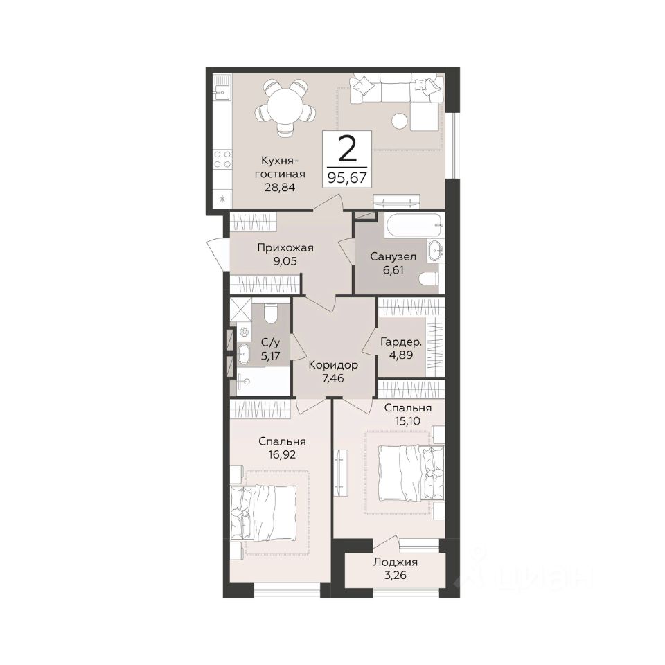 Общая площадь95,67 м2