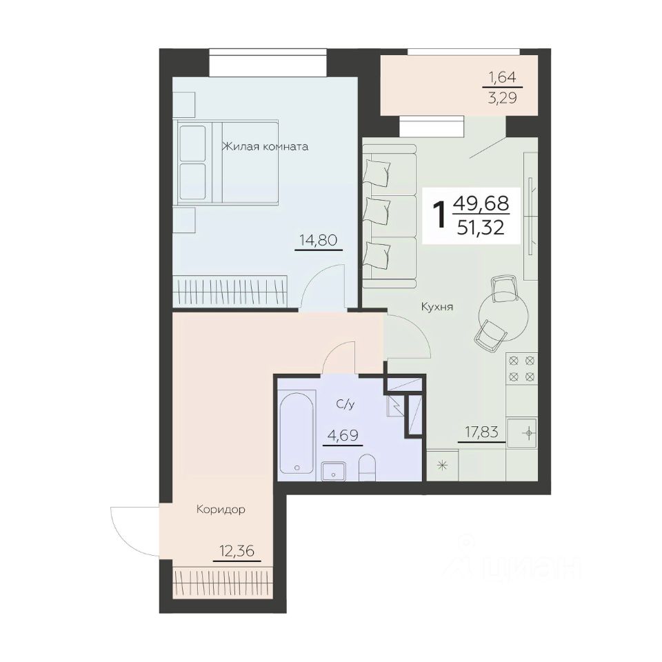 продам 1-к, Ленинградская, 29б7 656 944 ₽