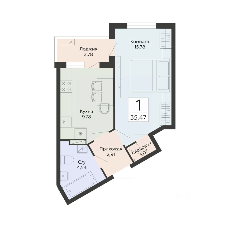 Продаётся 1-комнатная квартира в строящемся доме (1 этап), срок сдачи: IV-кв. 2029, общей площадью 35.47 кв.м., на 6 этаже. Новый жилой комплекс от группы компаний ''Развитие'' расположен по адресу: г. Воронеж, по ул. Туполева.