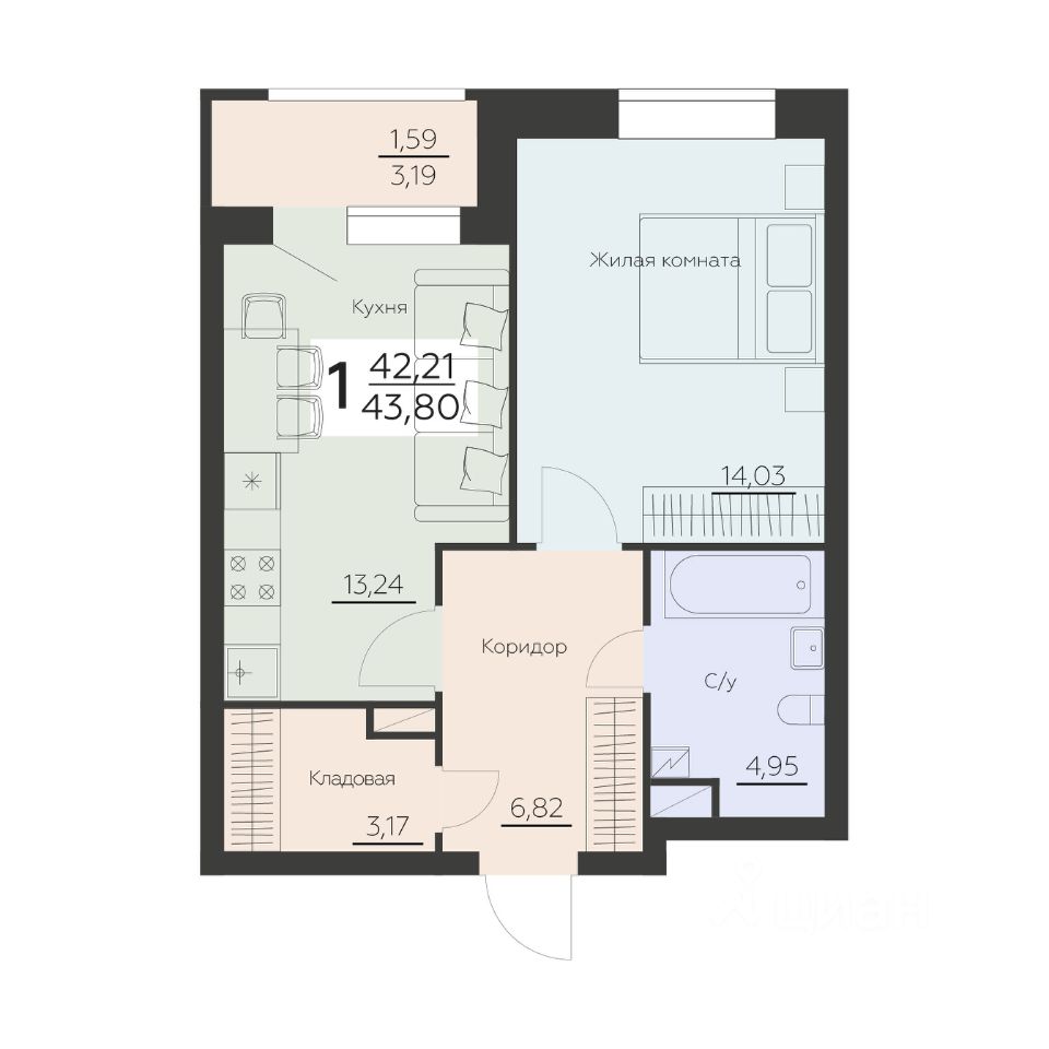 продам 1-к, Ленинградская, 29б6 513 060 ₽