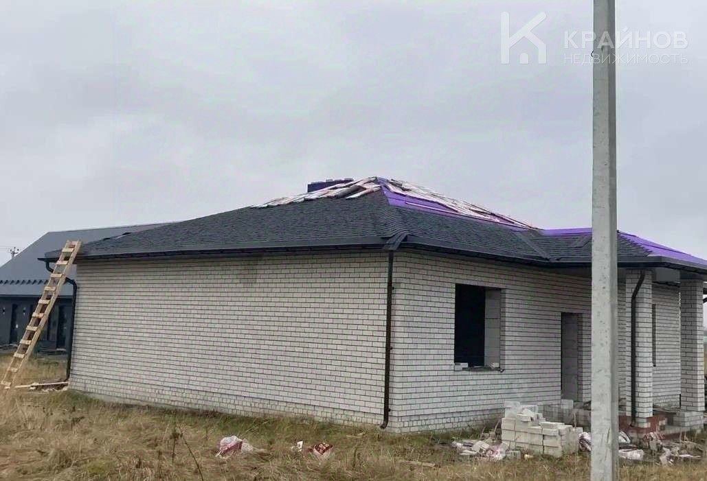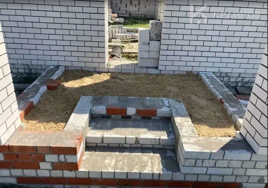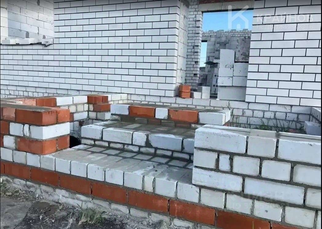 • Стены из газосиликатных блоков, облицованы кирпичом • Крыша — мягкая кровля • Подведено электричество • Проложены канализационные трубы