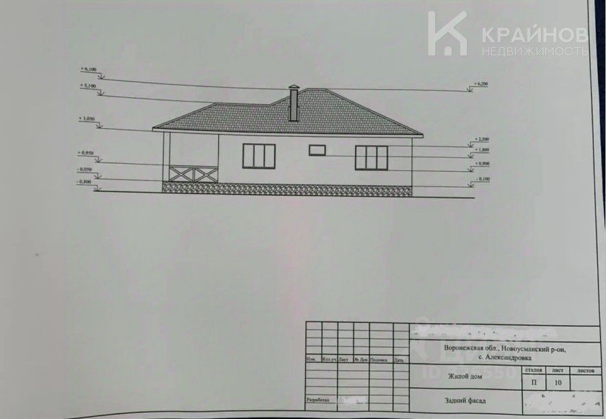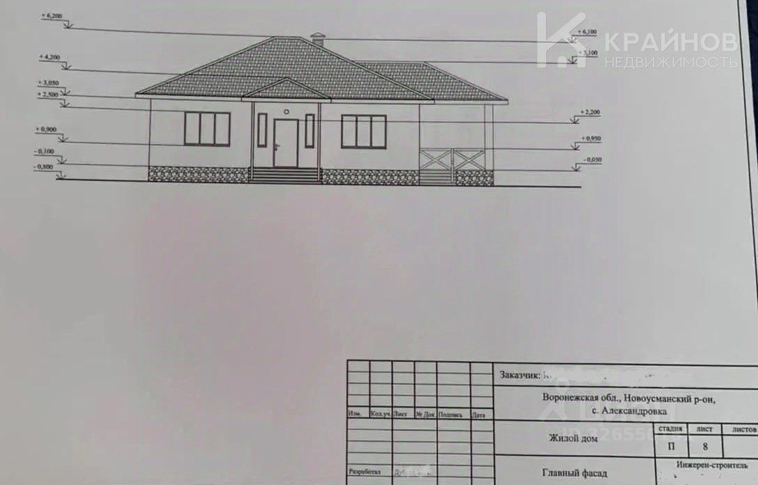 Недостроенный дом с террасой (есть пpоeкт cтpoитeльcтвa): • Площадь — 109,3 кв.м, Жилая - 52,3 кв.м, Кухня - 22,2 кв.м