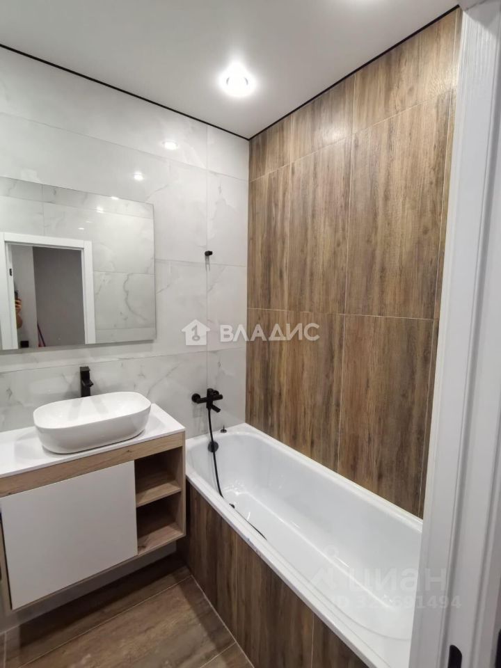 Обои флизелин, полы- ламинат и плитка, ванная крупноформатный керамогранит.