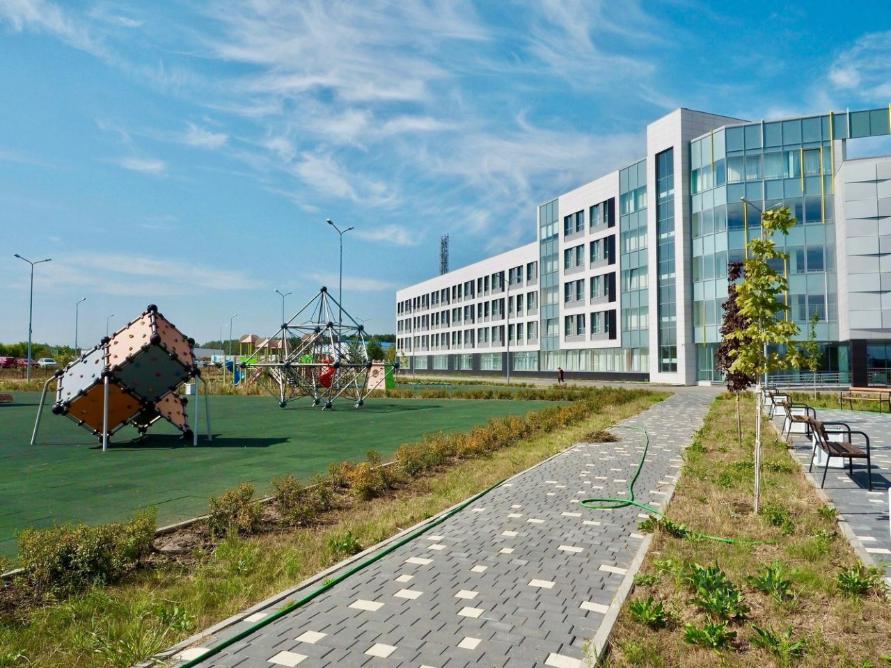 1. Социальный кластер для детей: школа (уже построена, начало обучения 1 сентября 2023г), детский сад, спортивно-оздоровительный комплекс, практически в каждом жилом комплексе - детское игровое пространство, места для настольных игр, зоны для малышей.
