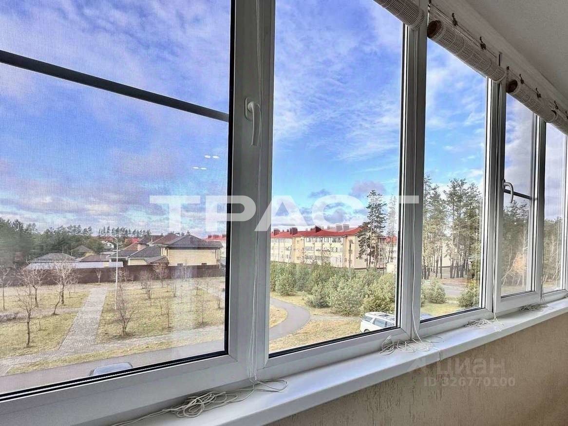 Большой балкон с двумя выходами. Из окон открывается гармоничный вид на западную строну света. При этом установлена мощная сплит система.